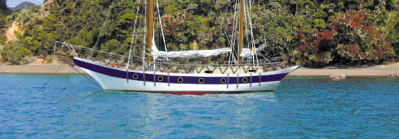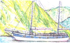 | Description of the two masted vessel which Ben Smart and Olivia Hope boarded on 1/1/98 off Furneaux Lodge; they were also seen on this vessel on 2/1/98. |